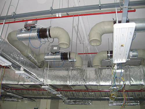 5) 實(shi)驗室(shi)風(feng)管(guan)在選擇防腐(fu)蝕(shi)(shi)較好,硬度高的(de)材(cai)質。本工程涉及到所有(you)風(feng)管(guan)均可采用(yong)防腐(fu)蝕(shi)(shi)性能好的(de)PVC/UPVC材(cai)質,風(feng)機(ji)全部為腐(fu)蝕(shi)(shi)性能好的(de)玻璃(li)鋼風(feng)機(ji)。